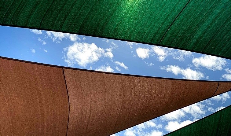 We do need to ensure however, that polyethylene textiles have adequate UV stabilisation. Resistance to UV degradation can differ somewhat depending upon colour and a UV stabiliser may be needed to assist some shades. To help us manage this risk and measure the performance of textile shade structures, assess their ability to survive a life cycle in Australian conditions, AS 4174:2018, Knitted and woven shade fabrics, is a standard that gives strong and tested guidance. This standard gives a simple accelerated weathering test method for predicting likely strength loss over time. This involves measuring initial textile strength followed up with a measurement after a 2000hr artificial daylight exposure.